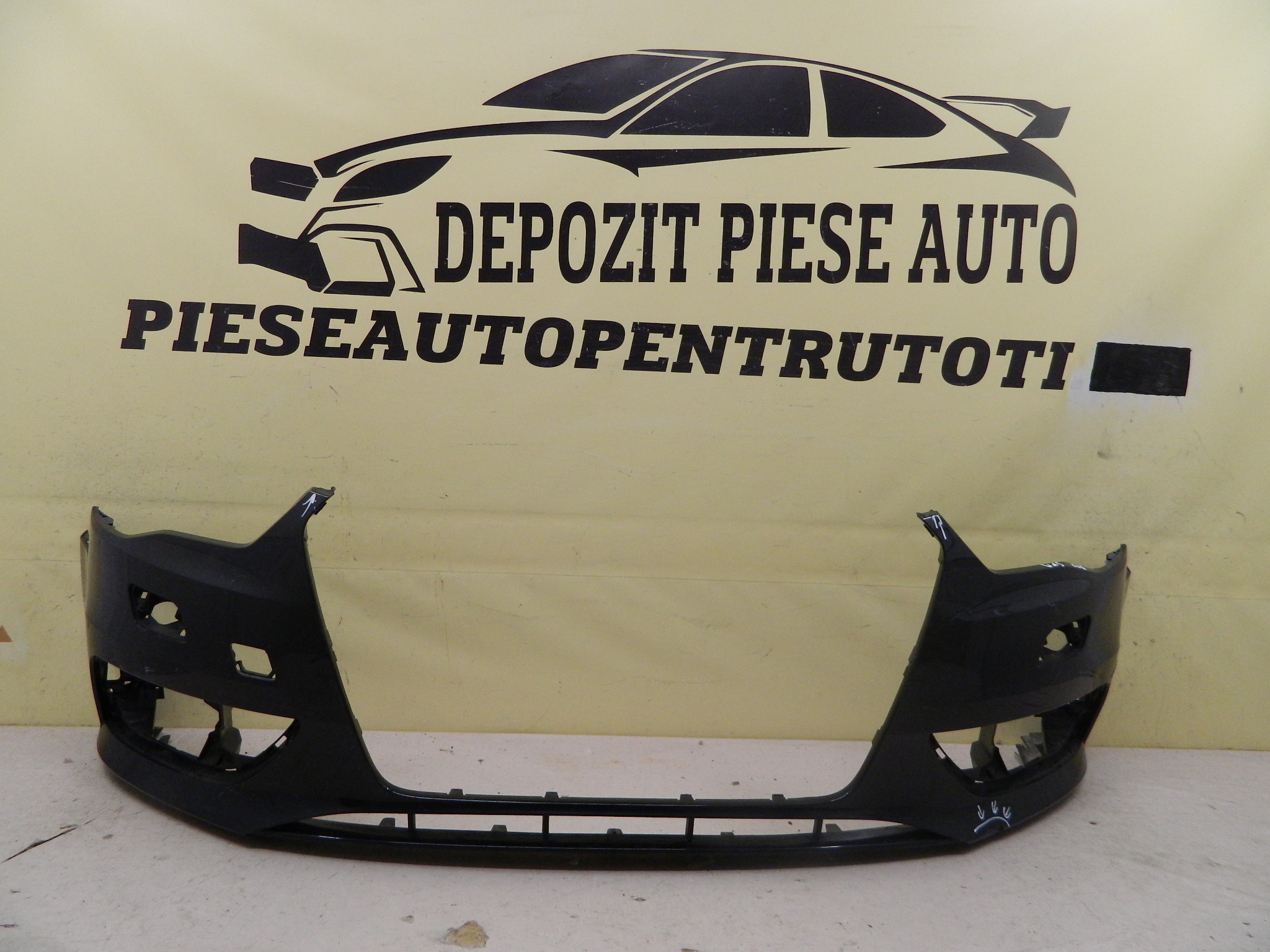 COD INTERN 24983 Bara fata Audi A3 8V Hatchback, 2012, 2013, 2014, 2015, 2016, cod origine 8V3807437. Cu gauri pentru senzori parcare (4) si spalatori faruri, usor atinsa in partea de jos, are doua prinderi rupte in partea de sus. id raft CB3