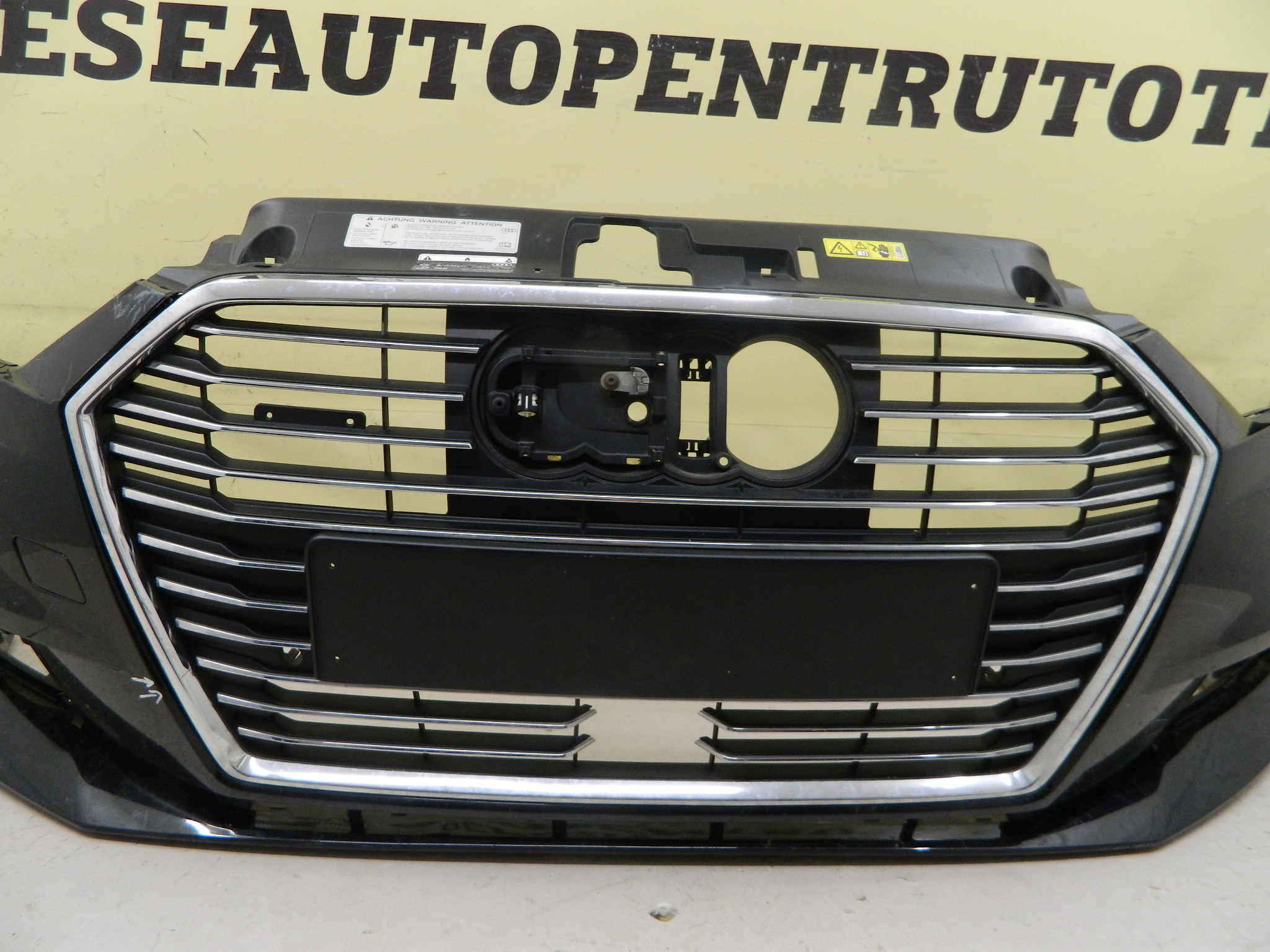 COD INTERN 24876 Bara fata Audi A3 facelift 8V Hatchback, 2016, 2017, 2018, 2019, cod origine 8V3807437AF. Cu gauri pentru senzori parcare (4) si spalatori faruri, include grilar radiator cu locas pentru distronic, cromul este fisurat in partea dreapta. id raft CA3