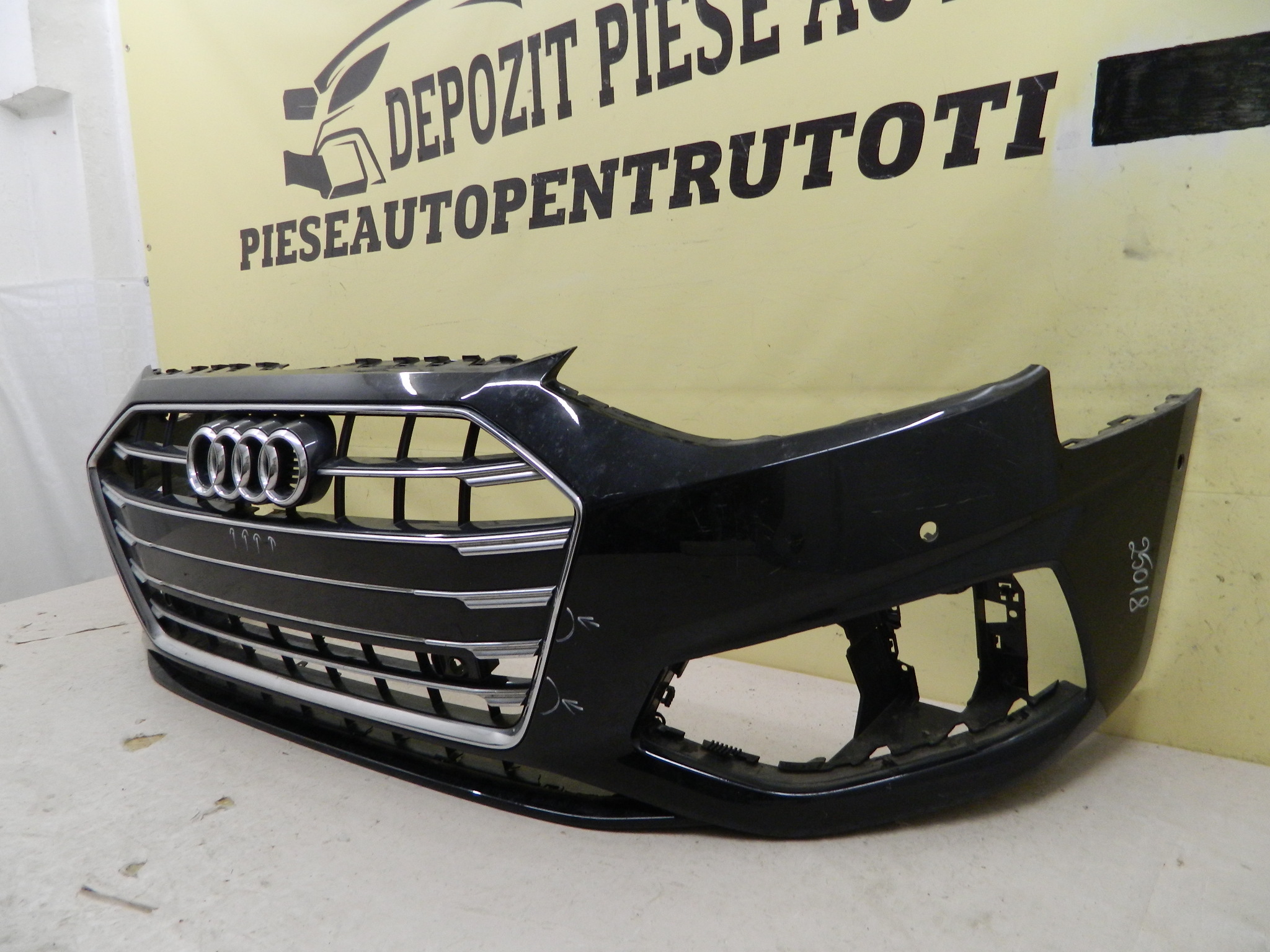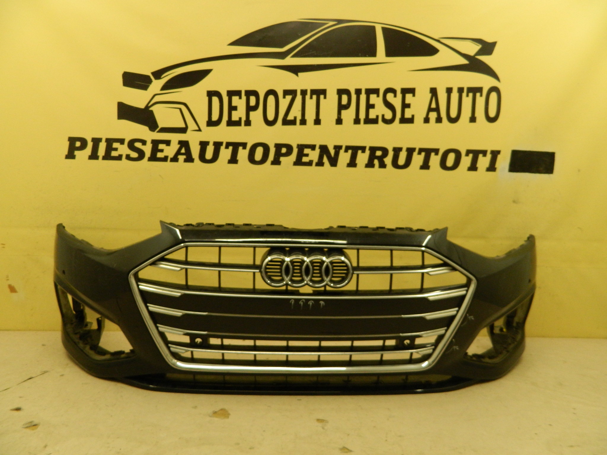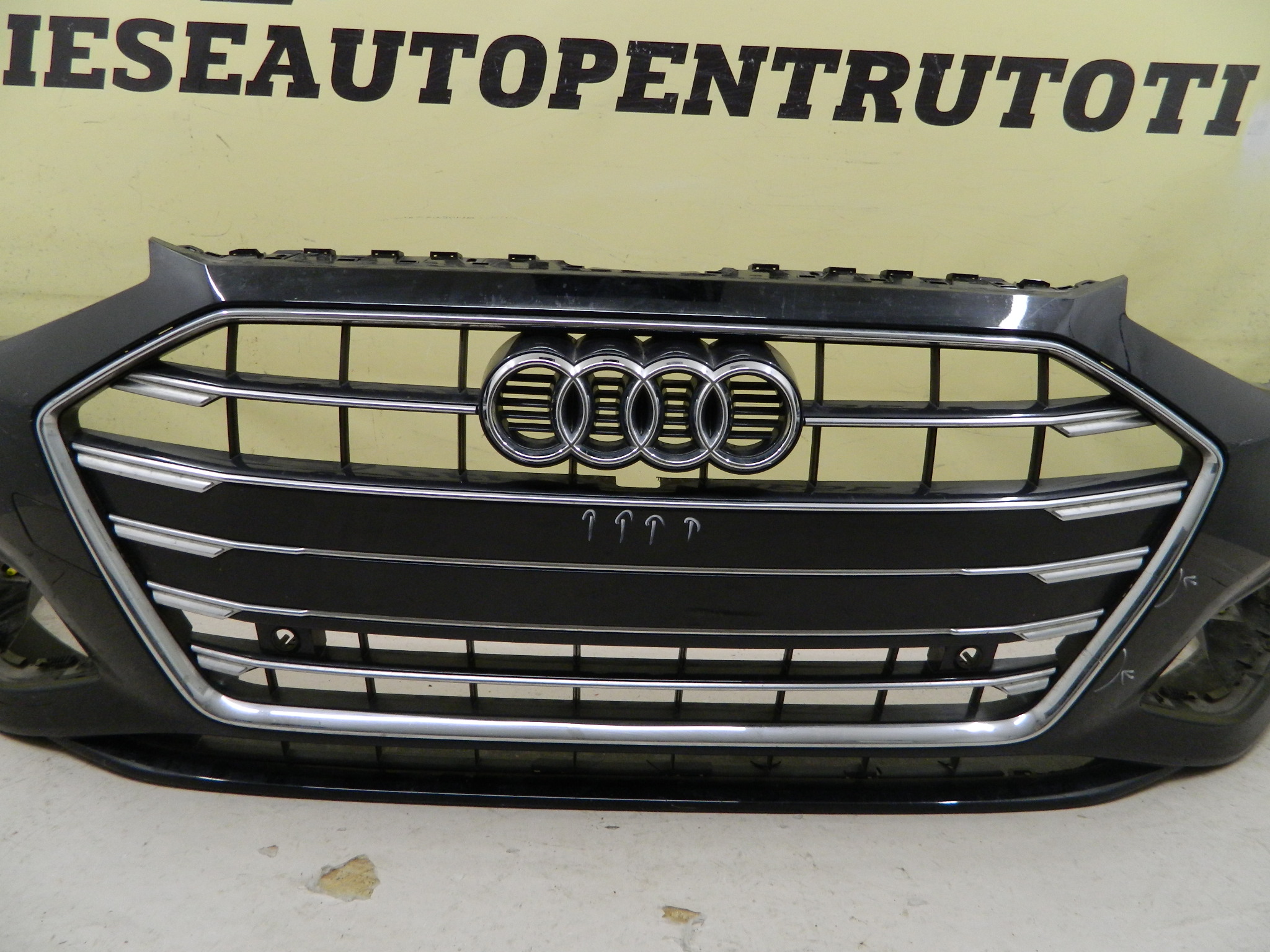 COD INTERN 25018 Bara fata Audi A4 B9 facelift, 2020, 2021, 2022, 2023, 2024, cod origine 8W0807437AH. Cu gauri pentru senzori parcare (6), include grila radiator decupata sub emblema si crom fisurat in partea stanga. id raft CH3
