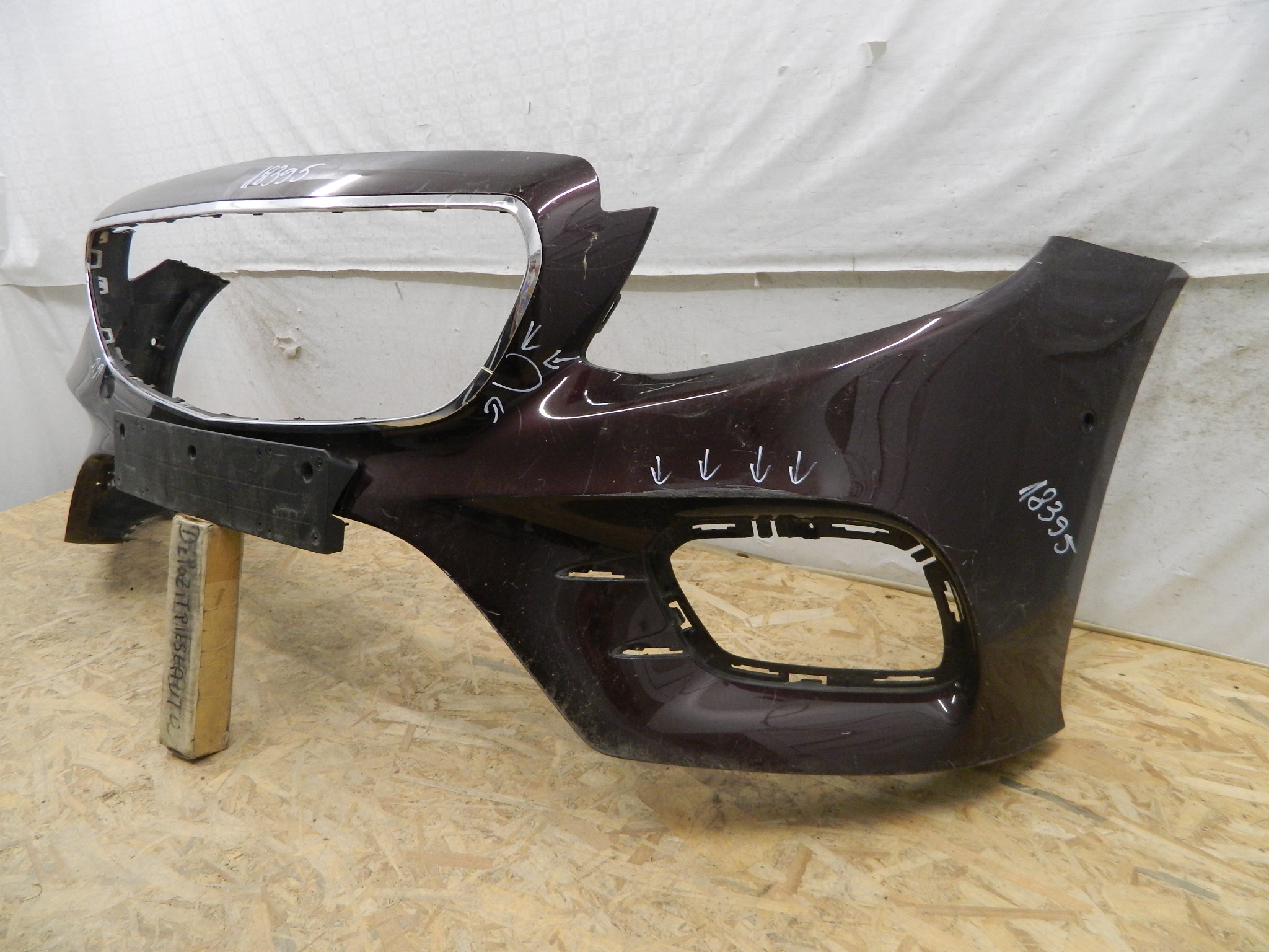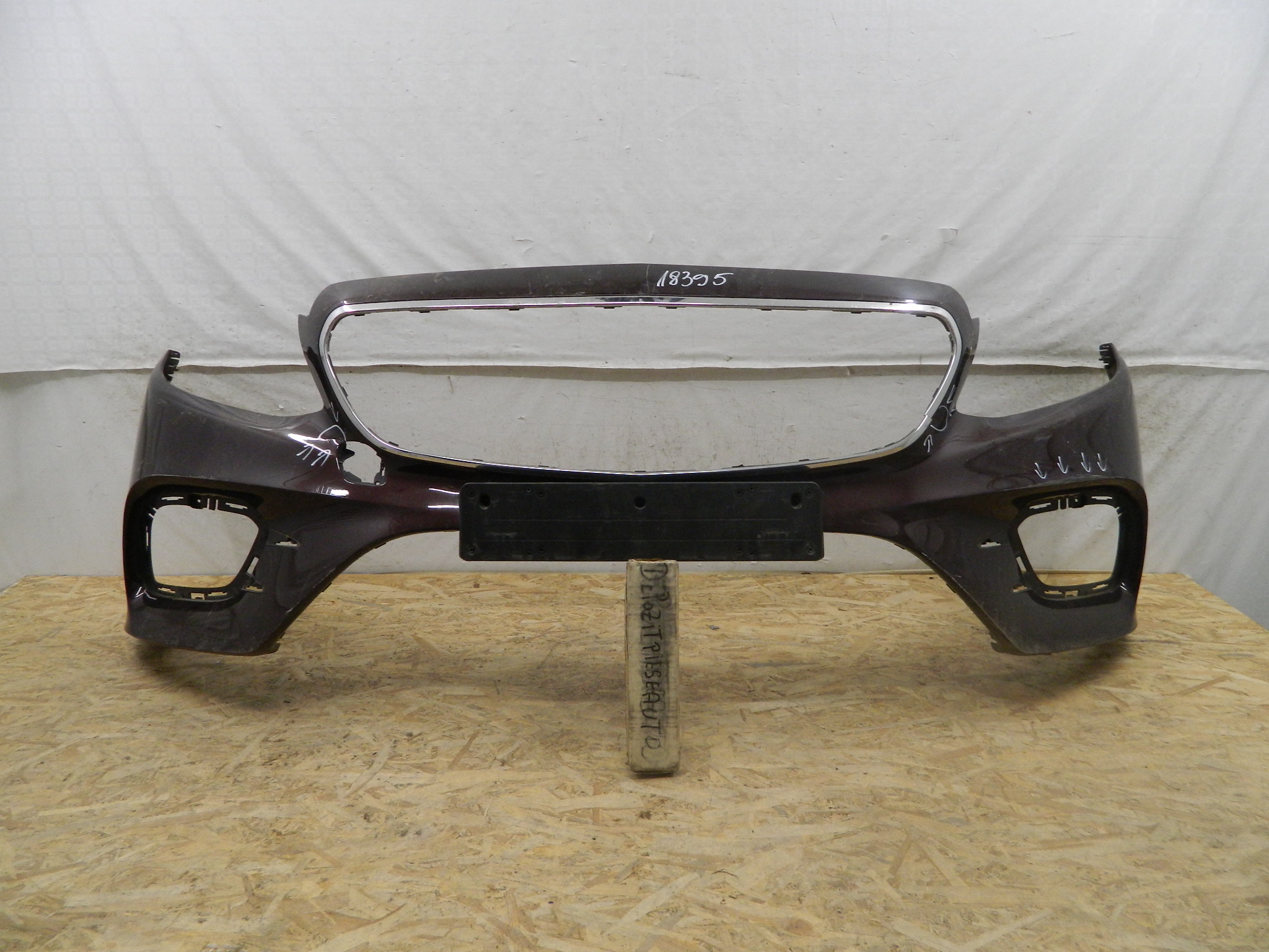 COD INTERN 18395 Bara fata Mercedes E-class Coupe / Cabrio AMG C238 / W238 2018, 2019, 2020, cod origine A2388856800, cu gauri pentru senzori de parcare (6), atinsa in partea dreapta in 2 locuri, si fisurata in partea stanga linga capacul de tractare, cromul este fisurat. ID Raft Y3