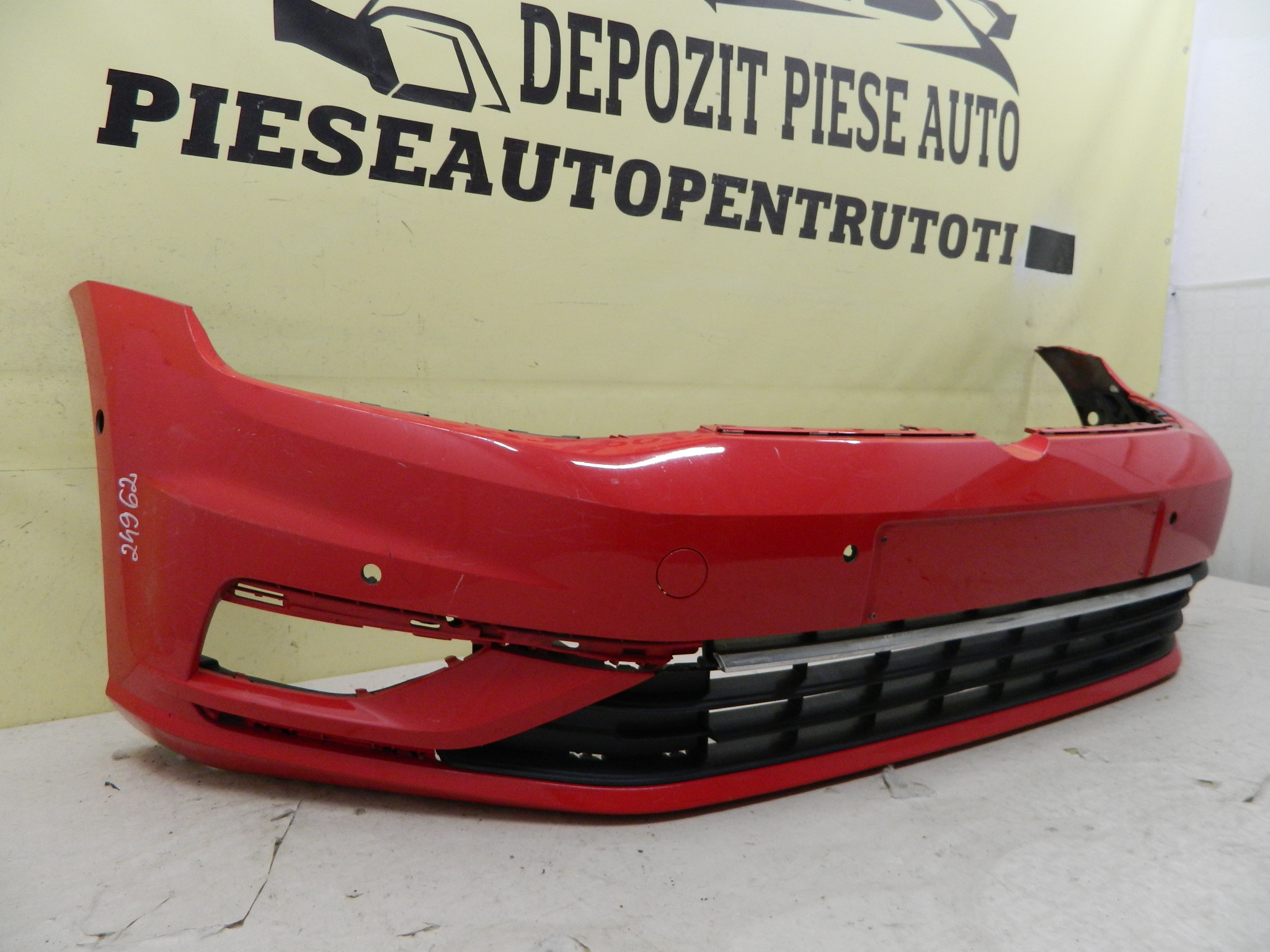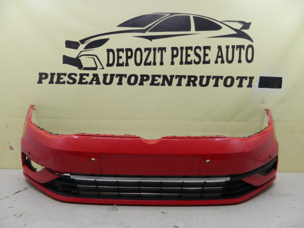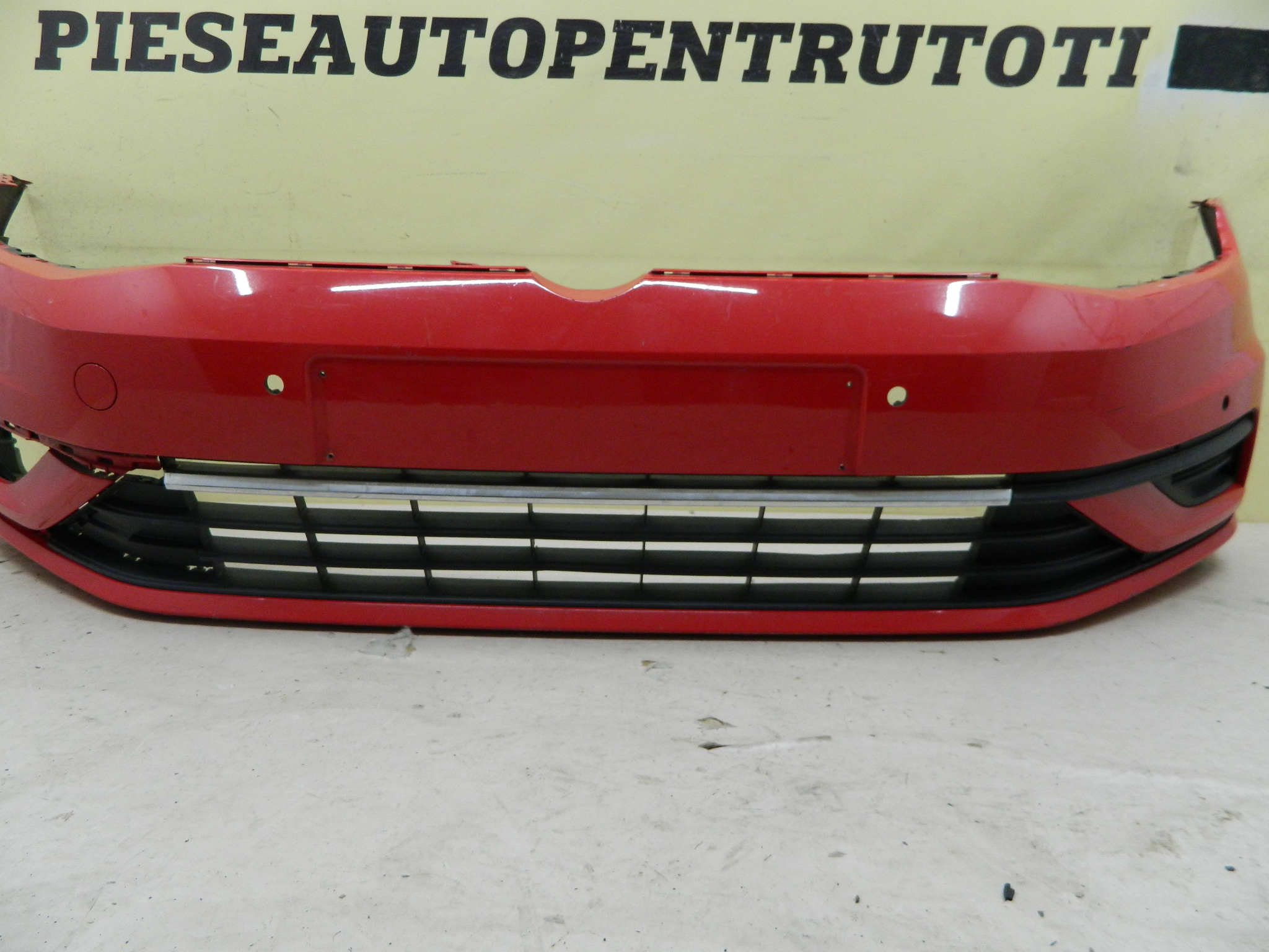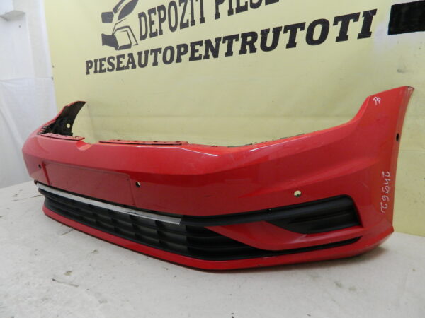 COD INTERN 24962 Bara fata VW Golf 7 facelift, 2017, 2018, 2019, 2020, cod origine 5G0807221FL. Cu gauri pentru senzori parcare (6). Are doua prindere rupte in partea stanga, include grila inferioara, grila proiector stanga si suporti stanga / dreapta. id raft CH1