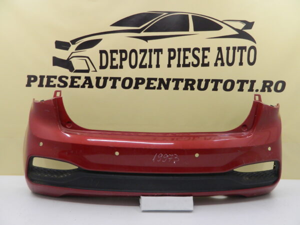 COD INTERN 19973 Bara spate Hyundai I20, 2018, 2019, 2020, 86611-C8AA0, cu gauri pentru senzori de parcare (4), include ornament, prinderea din partea stanga este partial rupta, usor fisurata pe mijloc jos, Id raft L3